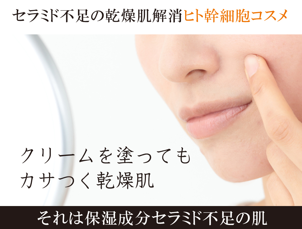 潤い肌に導くセラミドを作るヒト幹細胞コスメ。外から油分で 保護するだけでなく、肌の根本の保湿構造を作るクリーム。
