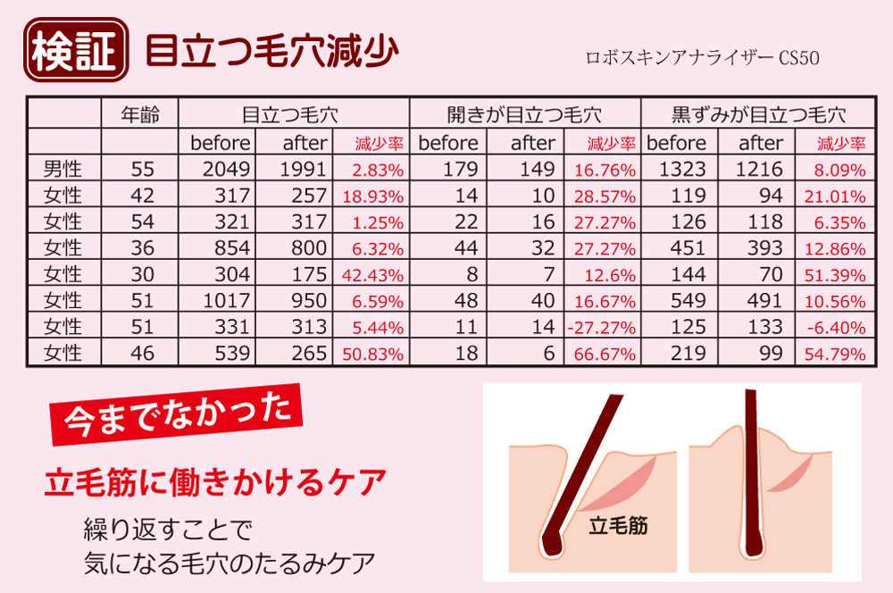 ヴィーナスカレントをご使用いただいているお客様から毛穴が引き締まっているという報告が多く