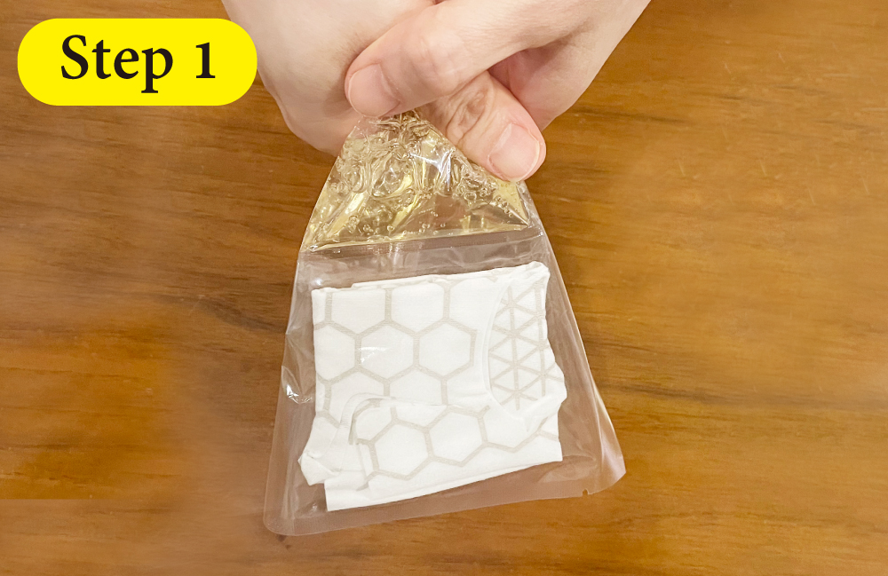 面(印刷無)を肌側にして顔に密着させます。※表面(ハニカム柄印刷)が外側