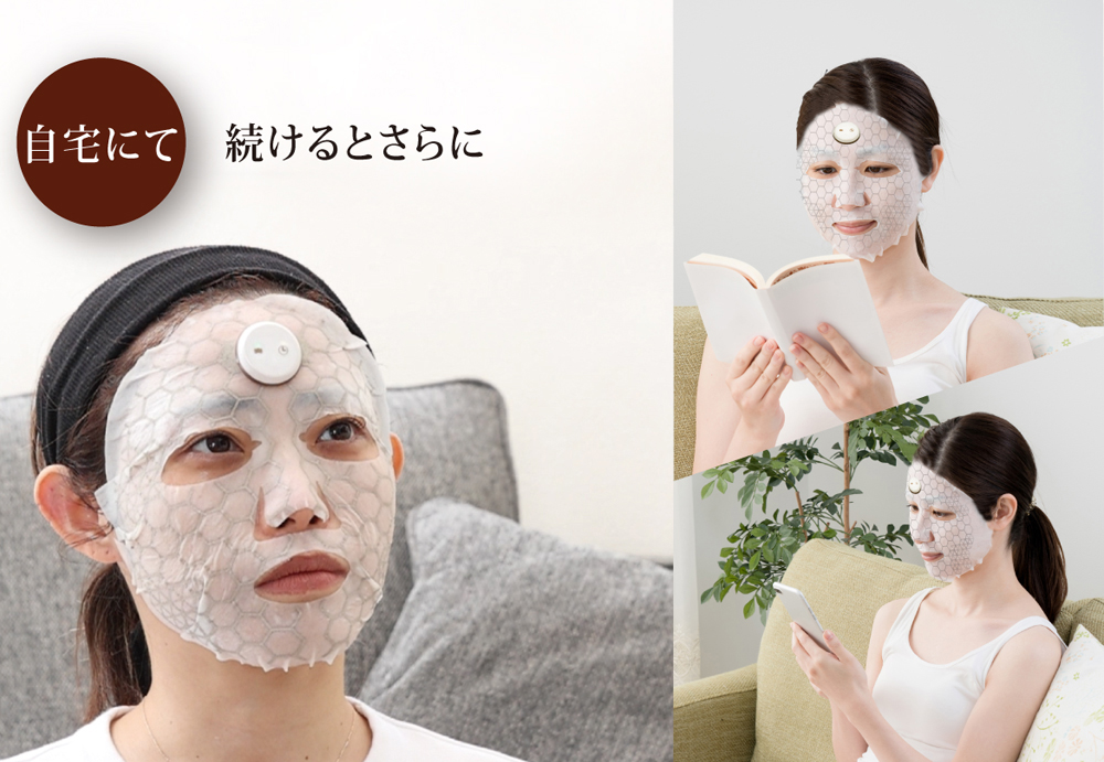 マルス電流が流れる不織布マスクで、マイクロカレント・EMS・イオン導入が同時にできます。 ヒト脂肪間質細胞エクソソームがコラーゲンエラスチンの真皮層に働き、お肌に弾力を作って行きます。 何といってもイオン導入で肌の中までしっかりと浸透するので、潤いと伝達機能が持続します。 また微樹悪電流が、生体電流を整えATPの生成を促進し、ターンオーバーが正常に働きます。 |