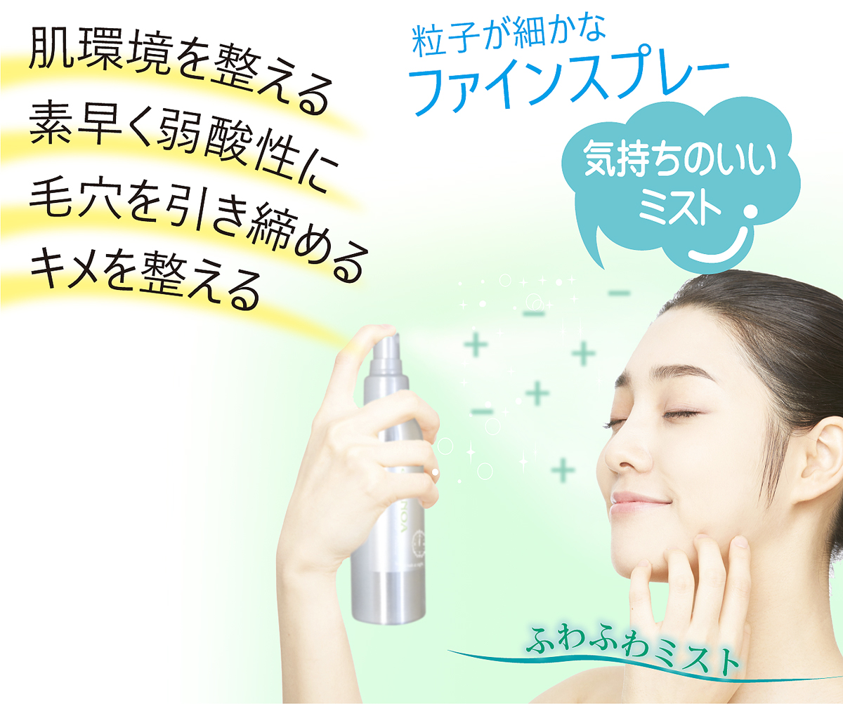 気持ちの良い細かなファインスプレータイプ。お肌の隅々に美肌水分を広げ、素早く弱酸性に整え・毛穴を引き締めキメを整えます。肌は光リフレクトされ艶肌に。