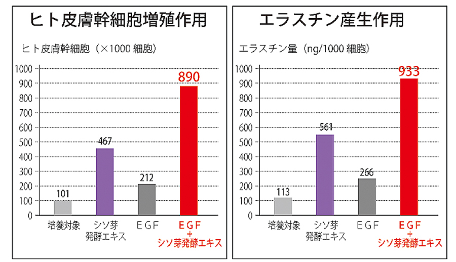 化粧品では、EGF(上皮成長因子)との組み合わせで、皮膚幹細 胞増殖作用を高め、表皮の新生を助ける働きがあります。